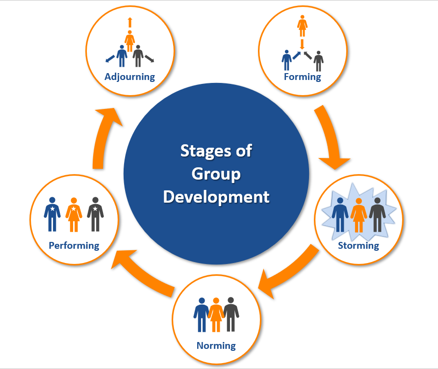 - Storming – Team members realize quickly that expectations are high, which starts to wear down their early excitement. They also tend to focus on immediate tasks, which can cause frustration with the team’s process and progress.